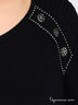Великолепный джемпер из мягкого, приятного на ощупь джерси. Модель прямого силуэта. Широкий округлый вырез горловины. Длинные облегающие рукава. Полочка и рукава декорированы вставками из кашкорсе и узорами из приклеенных страз. Яркий и лаконичный дизайн!