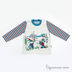 Детали: длинные рукава в полоску, контрастная бейка ворота