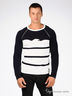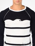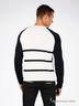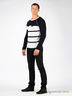 Отличный джемпер с длинными рукавами и округлым вырезом горловины. Декорирован узором из контрастных горизонтальных линий. Стильный и комфортный.