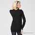 Удлиненный джемпер с длинными рукавами и воротником-стойкой. Спереди джемпер декорирован ажурной вязкой и бархатной лентой. Рукава присборены на резинку.