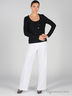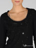 Классический джемпер прямого кроя из трикотажа. Овальный вырез горловины. Длинный рукав. Изделие декорировано бисером и пайетками.
