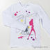 Симпатичная кофточка для Вашей дочки украшена цветным принтом и двумя стразиками – один в волосах девушки, а второй – ошейник у собачки.