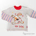 Очень симпатичная голубая кофта для маленького модника с красочным принтом в виде смешного щенка. На левом плечике имеется 2 застежки-кнопки. Рукава создают эффект «двойки».