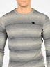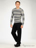 Стильный джемпер с длинными рукавами и округлым вырезом горловины. Низ изделия, манжеты рукавов и вырез горловины окантованы в рубчик. Изделие оформлено неброским принтом в полоску. Прекрасный вариант для повседневной носки.