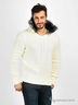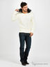 Теплый вязаный джемпер с отложным воротником, окантованным искусственным мехом. Прямой силуэт. Ворот, манжеты рукавов и низ изделия оформлены в рубчик.