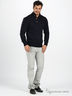 Теплый вязаный джемпер с воротником стойка и застежкой на молнию. Прямой силуэт. Застежка на молнию и пуговицы. Ворот, манжеты рукавов и низ изделия оформлены в рубчик.