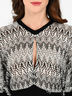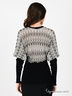 Детали: округлый вырез горловины, длинный цельнокроеный рукав на высокой манжете в рубчик, полочка декорирована прорезью, высокая трикотажная манжета в рубчик