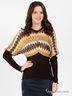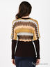 Детали: округлый вырез горловины, длинный цельнокроеный рукав на высокой манжете в рубчик, полочка декорирована прорезью, высокая трикотажная манжета в рубчик