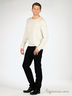 Превосходный классический джемпер из тонкого трикотажа с округлым вырезом горловины. Низ изделия, манжеты рукавов и вырез горловины окантованы в рубчик.