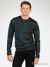 Превосходный джемпер с округлым вырезом горловины и длинными рукавами. Эта модель декорирована контрастным принтом в полоску. Низ изделия и манжеты окантованы в рубчик.
