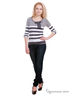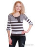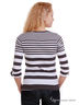 Джемпер в полоску с рукавами 3/4 и круглым вырезом. Декоративный бант на вырезе. Великолепный вариант для различных комбинаций в одежде, который подчеркнет Вашу женственность и безупречный вкус.