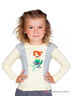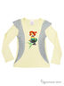 Приталенный лонгслив с длинным рукавом. Контрастные боковые вставки с многорядной резинкой, также вставки на плечиках. Полочка украшена аппликацией.