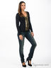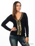 Детали: V-образный вырез; длинный рукав; манжеты и резинка в мелкий рубчик; изделие декорировано паетками и металлическими декоративными деталями