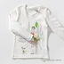 Детали: округлый вырез горловины дополнен трикотажной лентой, длинный прямой рукав, полочка декорирована оригинальным набивным рисунком