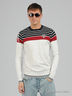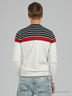 Классический мужской джемпер из приятного на ощупь трикотажа. Круглая горловина. Длинные рукава с манжетами в рубчик. Декорирован красными и темно-синими полосами.