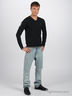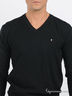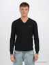 Классический мужской джемпер из теплого, приятного на ощупь трикотажа. V-образная горловина. Длинные рукава. Манжеты и низ изделия выполнены из трикотажа в рубчик и декорированы белой полосой.