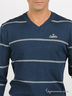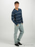 Классический мужской джемпер из мягкого, приятного на ощупь трикотажа в полоску. V-образная горловина. Длинные рукава с манжетами в рубчик.