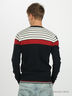 Классический мужской джемпер из приятного на ощупь трикотажа. Круглая горловина. Длинные рукава с манжетами в рубчик. Декорирован красными и белыми полосами.