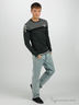 Классический мужской джемпер из приятного на ощупь трикотажа. Круглая горловина. Длинные рукава с манжетами в рубчик. Декорирован темно-синими и белыми полосами.