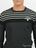 Классический мужской джемпер из приятного на ощупь трикотажа. Круглая горловина. Длинные рукава с манжетами в рубчик. Декорирован темно-синими и белыми полосами.