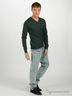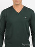 Классический мужской джемпер из теплого, приятного на ощупь трикотажа. V-образная горловина. Длинные рукава. Манжеты и низ изделия выполнены из трикотажа в рубчик и декорированы белой полосой.