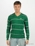 Классический мужской джемпер из мягкого, приятного на ощупь трикотажа в полоску. V-образная горловина. Длинные рукава с манжетами в рубчик.