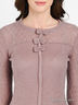 Вязаный джемпер прилегающего силуэта выполнен из мягкого шерстяного полотна. Округлый вырез горловины, длинный прямой рукав, полочка декорирована бантами, два накладных кармана. Изысканное сочетание простоты и элегантности.