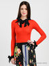 Оригинальный джемпер из тонкого, эластичного полушерстяного кашкорсе. Округлый вырез горловины с двумя декоративными разрезами на полочке. Длинные облегающие рукава с манжетами Разрезы и рукава декорированы широкой плотной лентой, завязывающееся бантом и тонким кружевом. Подол обработан швом "в закрутку". Будьте всегда стильной и женственной!