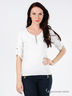 Детали: V-образный вырез горловиныс застежкай на пуговицах, короткий рукав 1/2 присобран хлястиком на руговице, подол так же посажен на резинку.