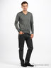 Превосходный трикотажный джемпер с длинными рукавами. Модель свободного покроя. V-образный вырез горловины. Низ изделия, манжеты рукавов и воротник окантованы в рубчик.