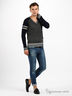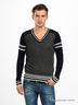 Превосходный джемпер с V-образным вырезом горловины и длинными рукавами. Эта модель декорирована принтом в полоску. Низ изделия и манжеты окантованы в рубчик.