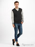 Отличный трикотажный джемпер с длинными рукавами и эффектом двойки. Модель свободного покроя. V-образный вырез горловины. Низ изделия, манжеты рукавов и воротник окантованы в рубчик. Манжеты декорированы принтом в полоску.