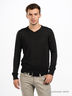 Отличный трикотажный джемпер с длинными рукавами. Модель свободного покроя. V-образный вырез горловины. Низ изделия, манжеты рукавов и воротник окантованы в рубчик.