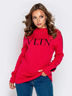 Удлиненный вязаный свитер с круглой горловиной. Модель с контрастными полосами на рукавах и надписью «VLTN» на полочке.