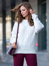 Повседневный джемпер с удлинённой спинкой и спущенной линией плечевого шва. В боковых швах предусмотрены разрезы. Манжеты и низ изделия выполнены резинкой.