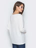 Белый джемпер свободного кроя из фактурного трикотажа. Вырез горловины «лодочкой» позволить носить вещь на одно плечо. Материал мягкий, приятный к телу и на ощупь.