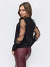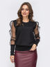 Женственный джемпер из креп-дайвинга с объёмным рукавом из трикотажной сетки. Модель с высоким манжетом. Отлично сочетается с однотонной юбкой или брюками.
