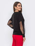 Оригинальный свитшот прямого кроя из мягкой ангоры. Объёмный рукав изделия дополнен тонкой фатиновой сеткой в «горох». Отлично сочетается как с брюками, так и с джинсами.