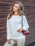 Стильный свитер прямого кроя с перфорацией на рукавах. Изделие из мягкой, приятной на ощупь пряжи с содержанием шерсти. Низ модели, как и вырез горловины, выполнен резинкой. Рукав – реглан.