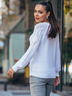 Вязаный свитер с ажурными рукавами. Низ изделия и манжеты выполнены резинкой.