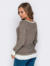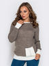 Практичный вязаный свитер прямого кроя. Модель с контрастным вырезом горловины «лодочка», манжетами и низом. Дополнен накладным карманом на полочке.