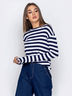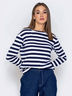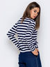Комфортный джемпер свободного кроя из приятной к телу ангоры в полоску. Модель с со спущенной линией плечевого шва и горловиной «лодочка». Отличный вариант для создания образа на каждый день.