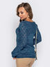 Женственный вязаный свитер с горловиной «лодочка». Кокетка и рукава выполнены ромбами с перфорацией.