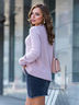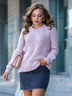 Практичный вязаный свитер с крупными косами на полочке. Манжеты изделия и широкая горловина выполнены резинкой.