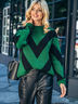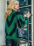 Джемпер свободного кроя с контрастной вязкой. Низ и манжеты выполнены резинкой.
