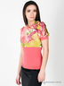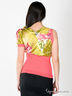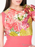 Лиф изделия отрезной, выполнен из натурального шелка. Один короткий рукав-фонарик с манжетой из эластичной резинки. Пройма правого плеча окантована так же эластичной трикотажной резинкой. Вырез-лодочка с напуском дополнен лентой, которую можно завязать в бант. Низ изделия выполнен в виде широкой трикотажной резинки розового цветас завышенной линией талии. Полочка расшита стразами.