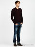 Стильный джемпер из полушерстяного материала крупной вязки. Округлый вырез горловины, длинный рукав. Декоративная вставка гладкой вязки на полочке.