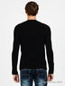 Стильный джемпер из полушерстяного материала крупной вязки. Округлый вырез горловины, длинный рукав. Декоративная вставка гладкой вязки на полочке.