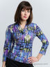 Трикотажный джемпер с воротником - шалькой. Модель приталенного покроя с рукавами 3/4. Выполнено изделие из качественного материала в контрастной расцветке.