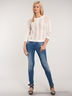 Замечательный джемпер с округлым вырезом горловины и рукавами 3/4. Изделие украшено фактурным рисунком. Отличный вариант на каждый день.